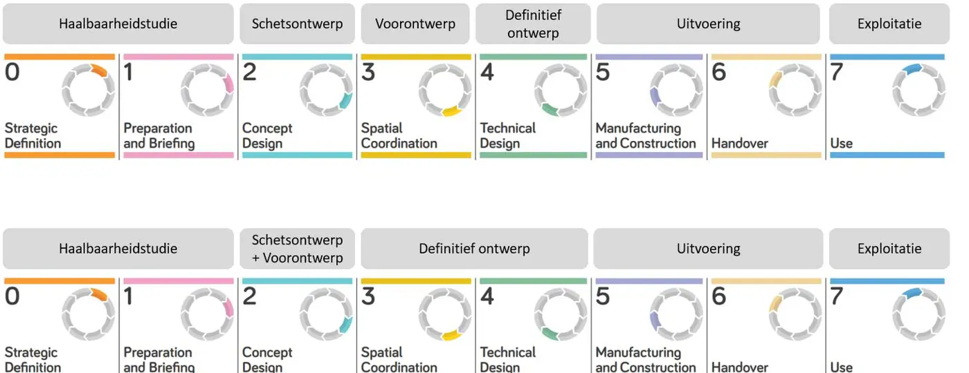 referentiestappenplan voor de verschillende partners in een bouwproject, ofwel fasering.