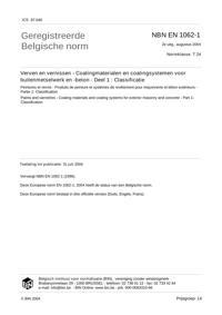 EN 1062-1 : Beschichtungsstoffe - Beschichtungsstoffe und Beschichtungssysteme für mineralische Substrate und Beton im Außenbereich - Teil 1: Einteilung.