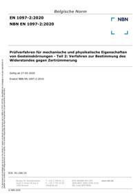 EN 1097-2 : Prüfverfahren für mechanische und physikalische Eigenschaften von Gesteinskörnungen - Teil 2: Verfahren zur Bestimmung des Widerstandes gegen Zertrümmerung.