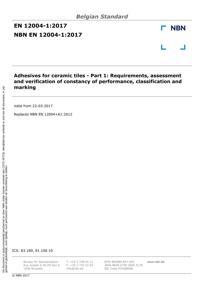 EN 12004-1 : Adhesives for ceramic tiles - Part 1: Requirements, assessment and verification of constancy of performance, classification and marking.