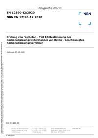 EN 12390-12 : Prüfung von Festbeton - Teil 12: Bestimmung des Karbonatisierungswiderstandes von Beton - Beschleunigtes Karbonatisierungsverfahren.