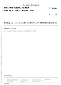 EN 12390-7 : 2019/AC:2020 : Testing hardened concrete - Part 7: Density of hardened concrete.