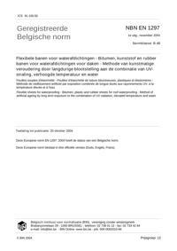 EN 1297 : Flexible sheets for waterproofing - Bitumen, plastic and rubber sheets for roof waterproofing - Method of artificial ageing by long term exposure to the combination of UV radiation, elevated temperature and water.