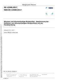 EN 13588 : Bitumen und bitumenhaltige Bindemittel - Bestimmung der Kohäsion von bitumenhaltigen Bindemitteln mit der Pendelprüfung.