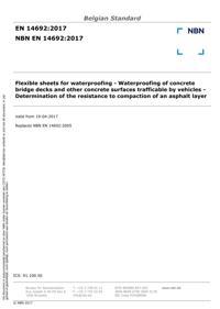 EN 14692 : Flexible sheets for waterproofing - Waterproofing of concrete bridge decks and other concrete surfaces trafficable by vehicles - Determination of the resistance to compaction of an asphalt layer.