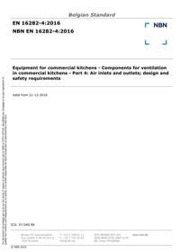 EN 16282-4 : Equipment for commercial kitchens - Components for ventilation in commercial kitchens - Part 4: Air inlets and outlets; design and safety requirements.