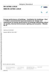 EN 16798-1 : Energy performance of buildings - Ventilation for buildings - Part 1: Indoor environmental input parameters for design and assessment of energy performance of buildings addressing indoor air quality, thermal environment, lighting and acoustics - Module M1-6.