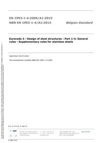 EN 1993-1-4 /A1 : Eurocode 3 - Design of steel structures - Part 1-4: General rules - Supplementary rules for stainless steels.
