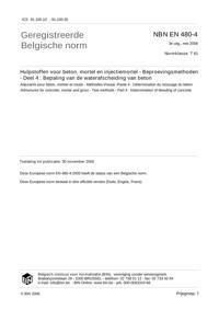 EN 480-4 : Admixtures for concrete, mortar and grout - Test methods - Part 4: Determination of bleeding of concrete.
