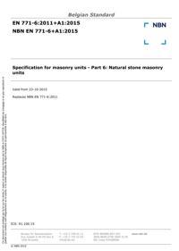 EN 771-6 : 2011+A1 : Specification for masonry units - Part 6: Natural stone masonry units.