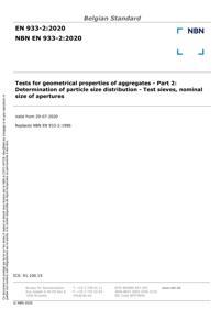 EN 933-2 : Tests for geometrical properties of aggregates - Part 2: Determination of particle size distribution - Test sieves, nominal size of apertures.