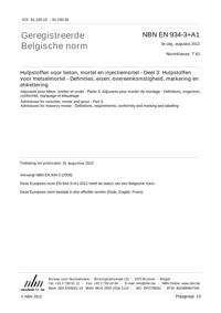 EN 934-3 : 2009+A1 : Zusatzmittel für Beton, Mörtel und Einpressmörtel - Teil 3: Zusatzmittel für Mauermörtel - Definitionen, Anforderungen, Konformität, Kennzeichnung und Beschriftung.