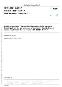EN ISO 12354-2 : Building acoustics - Estimation of acoustic performance of buildings from the performance of elements - Part 2: Impact sound insulation between rooms (ISO 12354-2:2017).