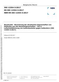 EN ISO 12354-3 : Bauakustik - Berechnung der akustischen Eigenschaften von Gebäuden aus den Bauteileigenschaften - Teil 3: Luftschalldämmung von Außenbauteilen gegen Außenlärm (ISO 12354-3:2017).