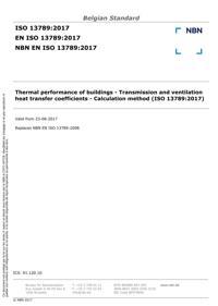 EN ISO 13789 : Thermal performance of buildings - Transmission and ventilation heat transfer coefficients - Calculation method (ISO 13789:2017).