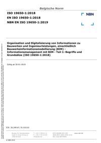 EN ISO 19650-1 : Organisation und Digitalisierung von Informationen zu Bauwerken und Ingenieurleistungen, einschließlich Bauwerksinformationsmodellierung (BIM) - Informationsmanagement mit BIM - Teil 1: Begriffe und Grundsätze (ISO 19650-1:2018).