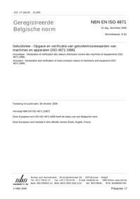 EN ISO 4871 : Akustik - Angabe und Nachprüfung von Geräuschemissionswerten von Maschinen und Geräten (ISO 4871:1996).