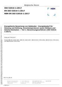 EN ISO 52016-1 : Energetische Bewertung von Gebäuden - Energiebedarf für Heizung und Kühlung, Innentemperaturen sowie fühlbare und latente Heizlasten ? Teil 1: Berechnungsverfahren (ISO 52016-1:2017).