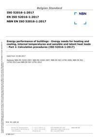 EN ISO 52016-1 : Energy performance of buildings - Energy needs for heating and cooling, internal temperatures and sensible and latent heat loads - Part 1: Calculation procedures (ISO 52016-1:2017).