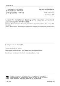NBN EN ISO 8974 : Plastiques - Résines phénoliques - Dosage du phénol résiduel par chromatigraphie en phase gazeuse (ISO 8974:2002).