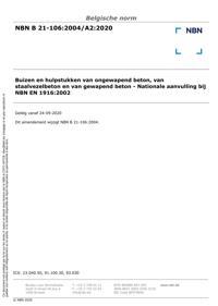 NBN B 21-106 : 2004/A2:2020 : Buizen en hulpstukken van ongewapend beton, van staalvezelbeton en van gewapend beton - Nationale aanvulling bij NBN EN 1916:2002.