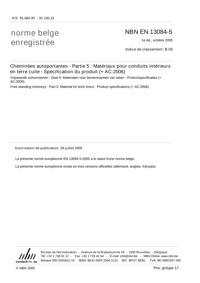 NBN EN 13084-5 : Cheminées autoportantes - Partie 5: Matériaux pour conduits intérieurs en terre cuite - Spécification du produit (+AC:2006).