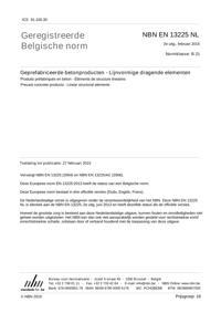 NBN EN 13225 NL : Geprefabriceerde betonproducten - Lijnvormige dragende elementen.