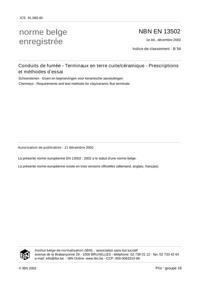 NBN EN 13502 : Conduits de fumée - Terminaux en terre cuite/céramique - Prescriptions et méthodes d'essai.