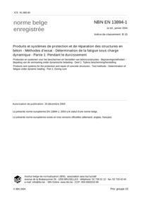 NBN EN 13894-1 : Produits et systèmes de protection et de réparation des structures en béton - Méthodes d'essai - Détermination de la fatigue sous charge dynamique - Partie 1: Pendant le durcissement.