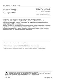 NBN EN 14255-4 : Mesurage et évaluation de l'exposition des personnes aux rayonnements optiques incohérents - Partie 4: Terminologie et grandeurs utilisées pour le mesurage de l'exposition au rayonnement ultraviolet, visible et infrarouge.