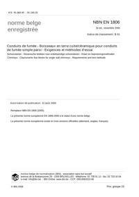 NBN EN 1806 : Conduits de fumée - Boisseaux en terre cuite/céramique pour conduits de fumée simple paroi - Exigences et méthodes d'essai.