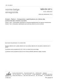NBN EN 197-1 : Ciment - Partie 1: Composition, spécifications et critères de conformité des ciments courants.
