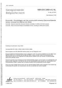 NBN EN 1990 +A1 NL : Eurocode - Grondslagen van het constructief ontwerp (Geconsolideerde versie, inclusief A1:2005 en AC:2010).