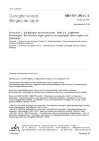 NBN EN 1991-1-1 : Eurocode 1 - Belastingen op constructies - Deel 1-1 : Algemene belastingen - Volumieke gewichten, eigen gewicht en opgelegde belastingen voor gebouwen (+ AC:2009).