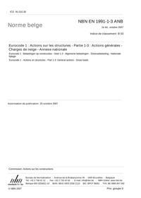 NBN EN 1991-1-3 ANB : Eurocode 1 - Actions sur les structures - Partie 1-3: Actions générales - Charges de neige - Annexe nationale.
