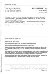 NBN EN 1993-1-7 NL : Eurocode 3 - Ontwerp en berekening van staalconstructies - Deel 1-7 : Algemene regels - Sterkte en stabiliteit van haaks op het vlak belaste plaatconstructies (+ AC:2009).