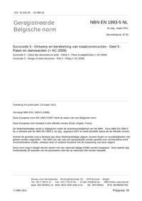 NBN EN 1993-5 NL : Eurocode 3 - Ontwerp en berekening van staalconstructies - Deel 5 : Palen en damwanden (+ AC:2009).