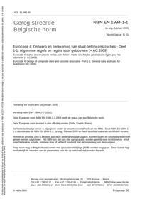 NBN EN 1994-1-1 : Eurocode 4: Ontwerp en berekening van staal betonconstructies - Deel 1-1: Algemene regels en regels voor gebouwen (+ AC:2009).