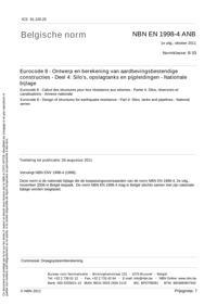NBN EN 1998-4 ANB : Eurocode 8 - Ontwerp en berekening van aardbevingsbestendige constructies - Deel 4: Silo's, opslagtanks en pijpleidingen - Nationale bijlage.