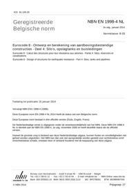 NBN EN 1998-4 NL : Eurocode 8 - Ontwerp en berekening van aardbevingsbestendige constructies - Deel 4 : Silo's, opslagtanks en buisleidingen.