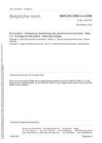NBN EN 1999-1-4 ANB : Eurocode 9 : Ontwerp en berekening van aluminiumconstructies - Deel 1-4 : Koudgevormde platen - Nationale bijlage.