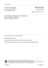 NBN EN 315 : Contrepaqué - Tolérances sur dimensions.