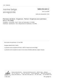 NBN EN 622-2 : Panneaux de fibres - Exigences - Partie 2: Exigences pour panneaux durs (+AC:2005).
