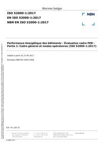 NBN EN ISO 52000-1 : Performance énergétique des bâtiments - Évaluation cadre PEB - Partie 1: Cadre général et modes opératoires (ISO 52000-1:2017).