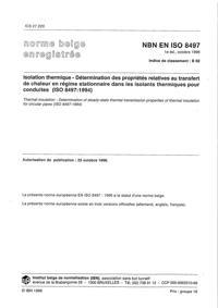 NBN EN ISO 8497 : Isolation thermique - Détermination des propriétés relatives au transfert de chaleur en régime stationnaire dans les isolants thermiques pour conduites (ISO 8497:1994).