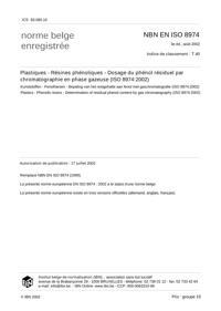 NBN EN ISO 8974 : Plastiques - Résines phénoliques - Dosage du phénol résiduel par chromatigraphie en phase gazeuse (ISO 8974:2002).
