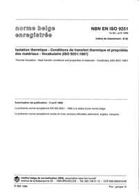 NBN EN ISO 9251 : Isolation thermique - Conditions de transfert thermique et propriétés des matériaux - Vocabulaire (ISO 9251:1987).