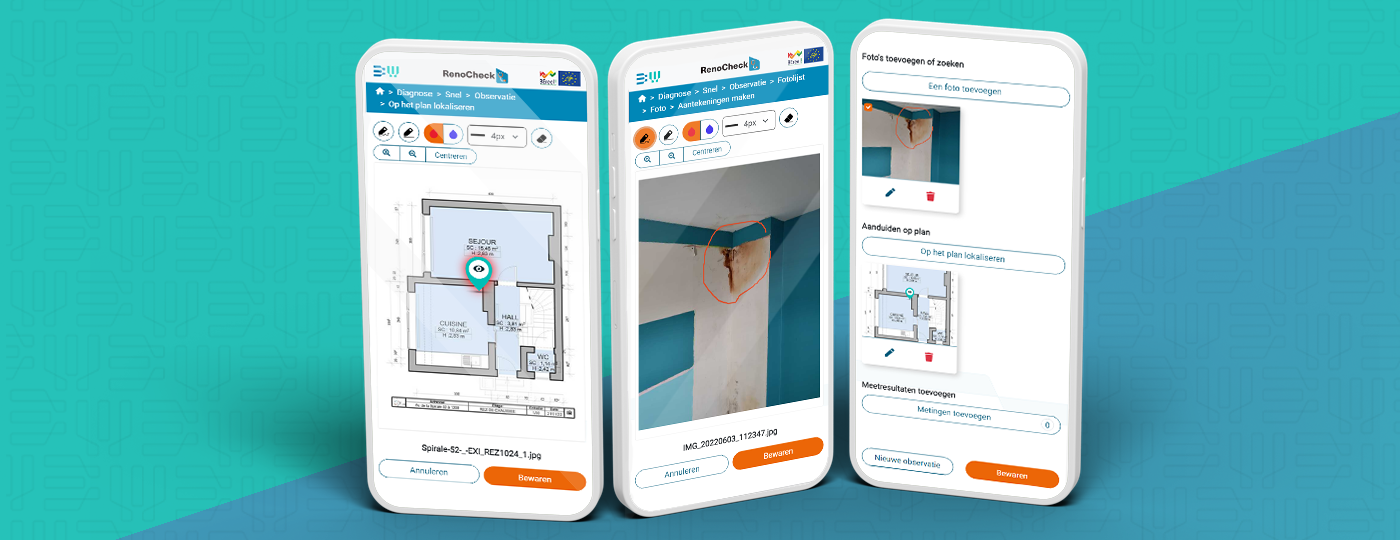 Voordat je begint met de renovatie van een gebouw, is het cruciaal om de staat ervan in kaart te brengen. Doorgaans gaat een architect of aannemer daarvoor ter plaatse en maakt aantekeningen en foto's bij zijn observaties, zodat hij daarna op kantoor een nauwkeurig verslag van de situatie kan opstellen en de nodige werkzaamheden kan plannen. Als hij of zijn tijdens dat plaatsbezoek zaken over het hoofd ziet, wordt het natuurlijk lastig. RenoCheck is ontwikkeld om de bouwprofessionals bij die taken te faciliteren !
