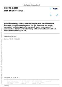 EN 303-6 : Heating boilers - Part 6: Heating boilers with forced draught burners - Specific requirements for the domestic hot water operation and energy performance of water heaters and combination boilers with atomizing oil burners of nominal heat input not exceeding 70 kW.