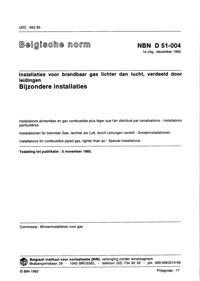 NBN D 51-004 : Installaties voor brandbaar gas lichter dan lucht, verdeeld door leidingen - Bijzondere installaties.